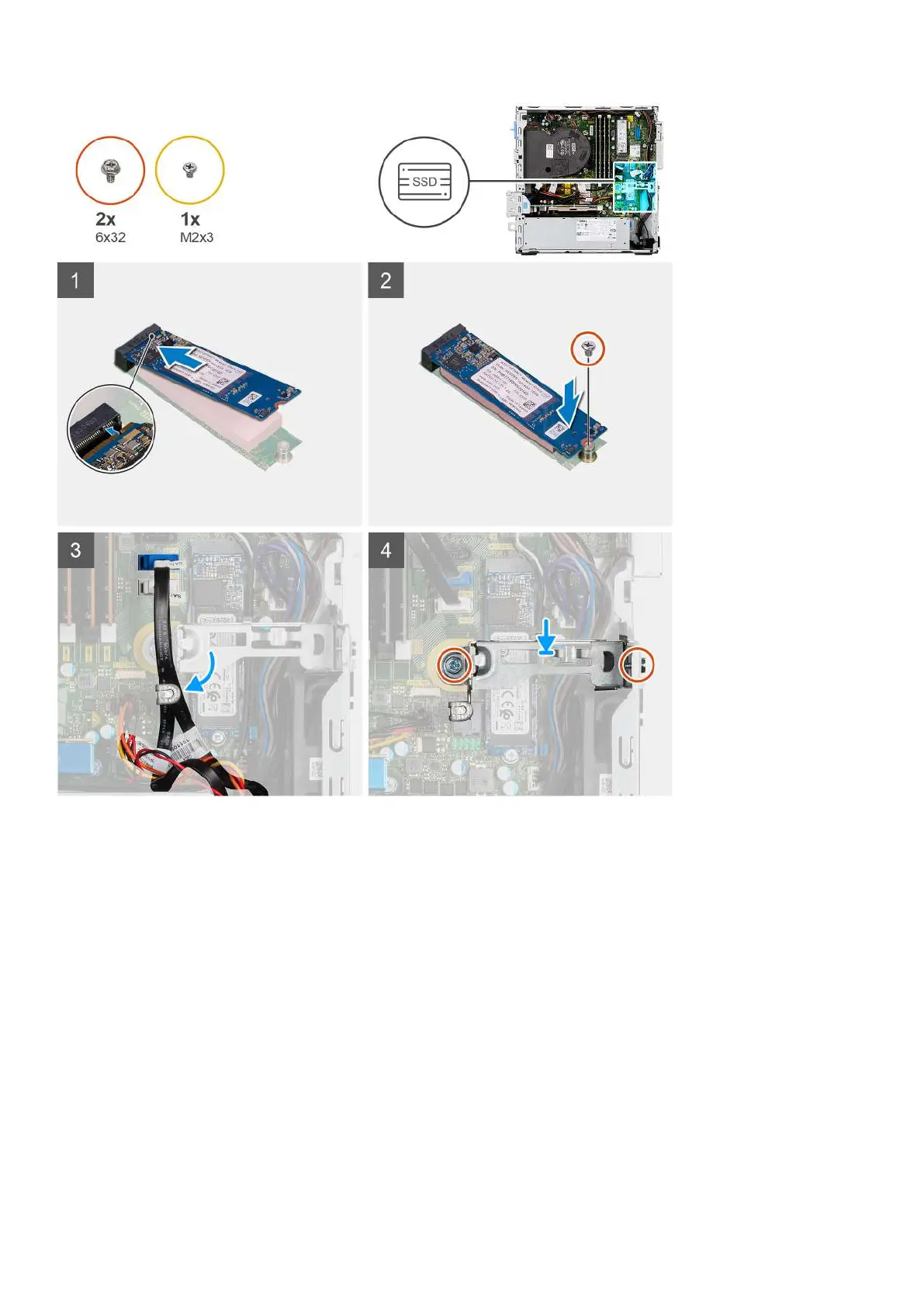 3. Replace the screw (M2x3) that secures the solid-state drive to the system board.