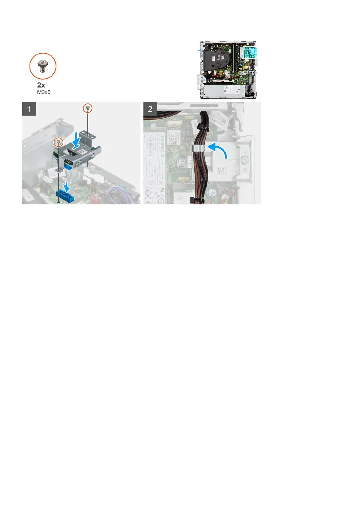 2. Install the two screws (M3x5) that secure the SD-card bracket to the system board and computer.