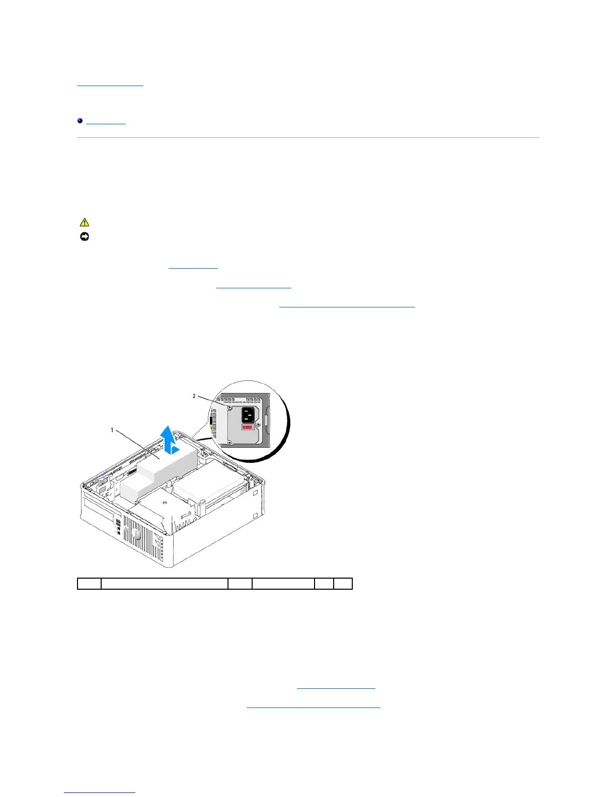 6. Slide the power supply toward the front of the computer approximately 1 inch.
