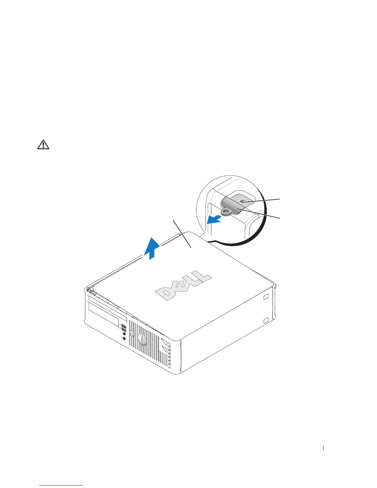 1 Ranura para cable de seguridad 2 Pestillo de liberación de la cubierta 3 Cubierta del ordenador