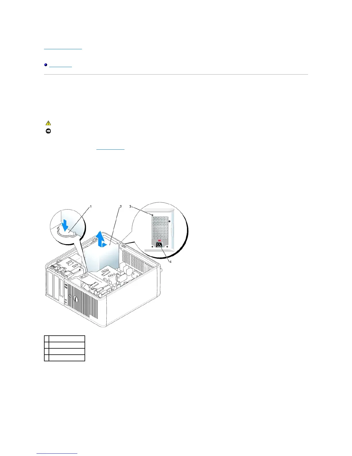 5. Slide the power supply toward the front of the computer by approximately 1 inch.
