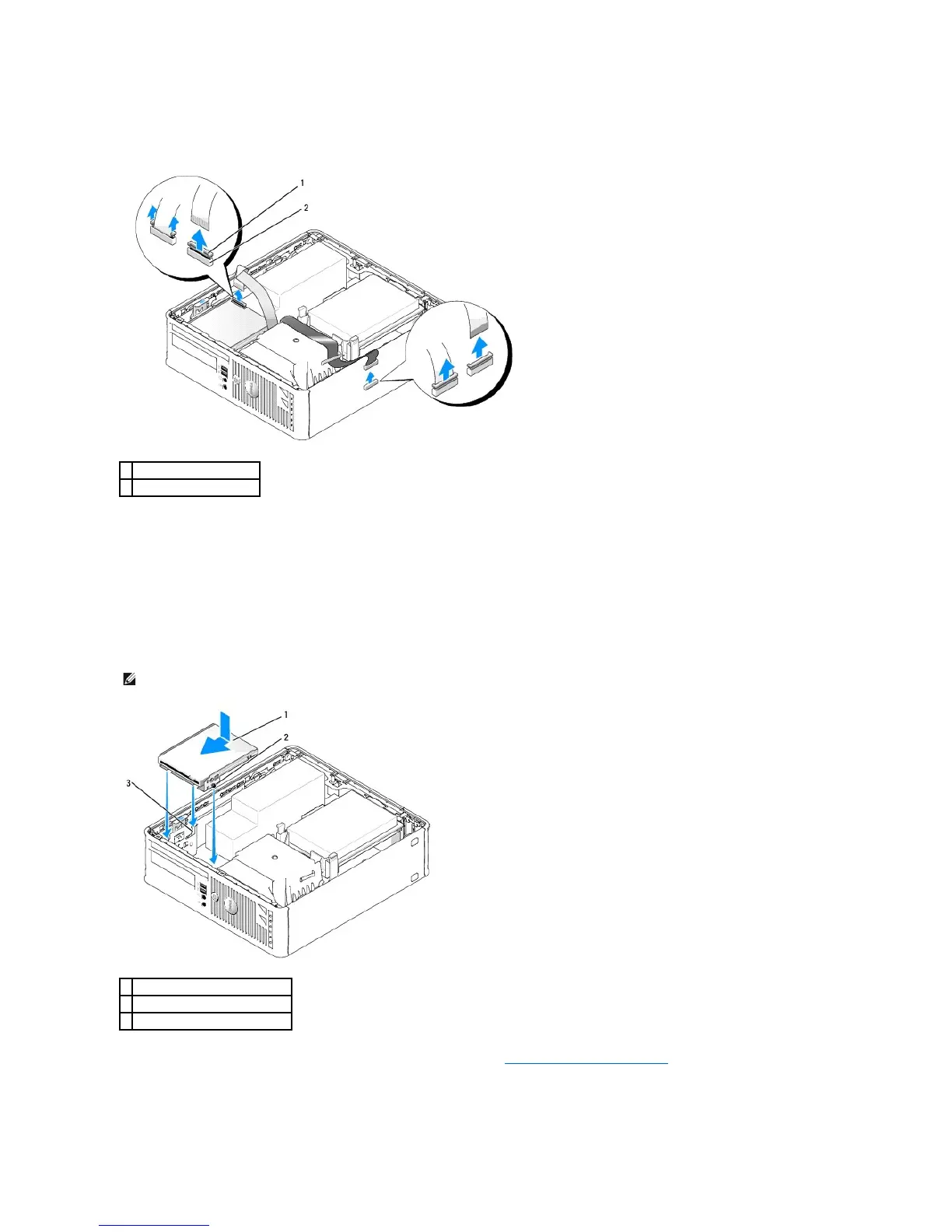 1. If you are replacing a drive, remove the floppy drive or Media Card Reader (see Floppy Drive and Media Card Reader).