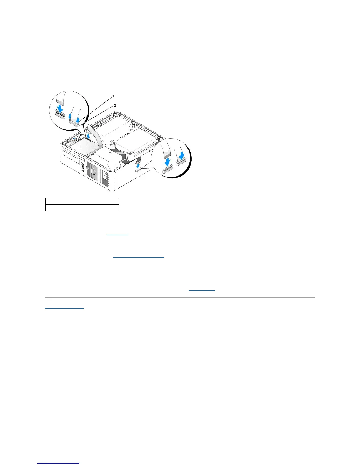 4. If you are installing a floppy drive, insert the data cable into the cable release tab on the system board and press down on the tab until it clicks to lock it