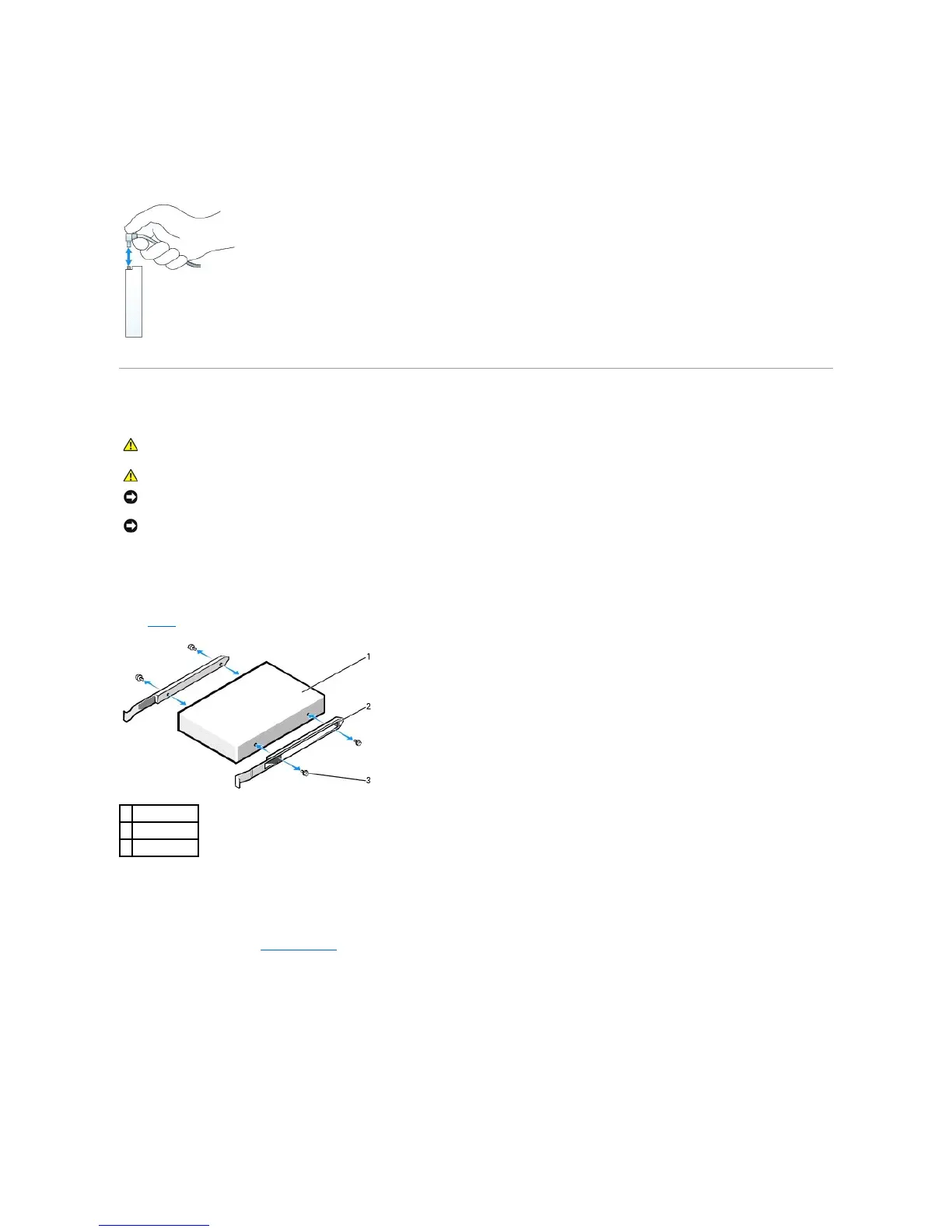 1. If you are installing a new drive, rather than replacing a drive, attach the drive rails—located inside the cover—to the new drive and proceed with