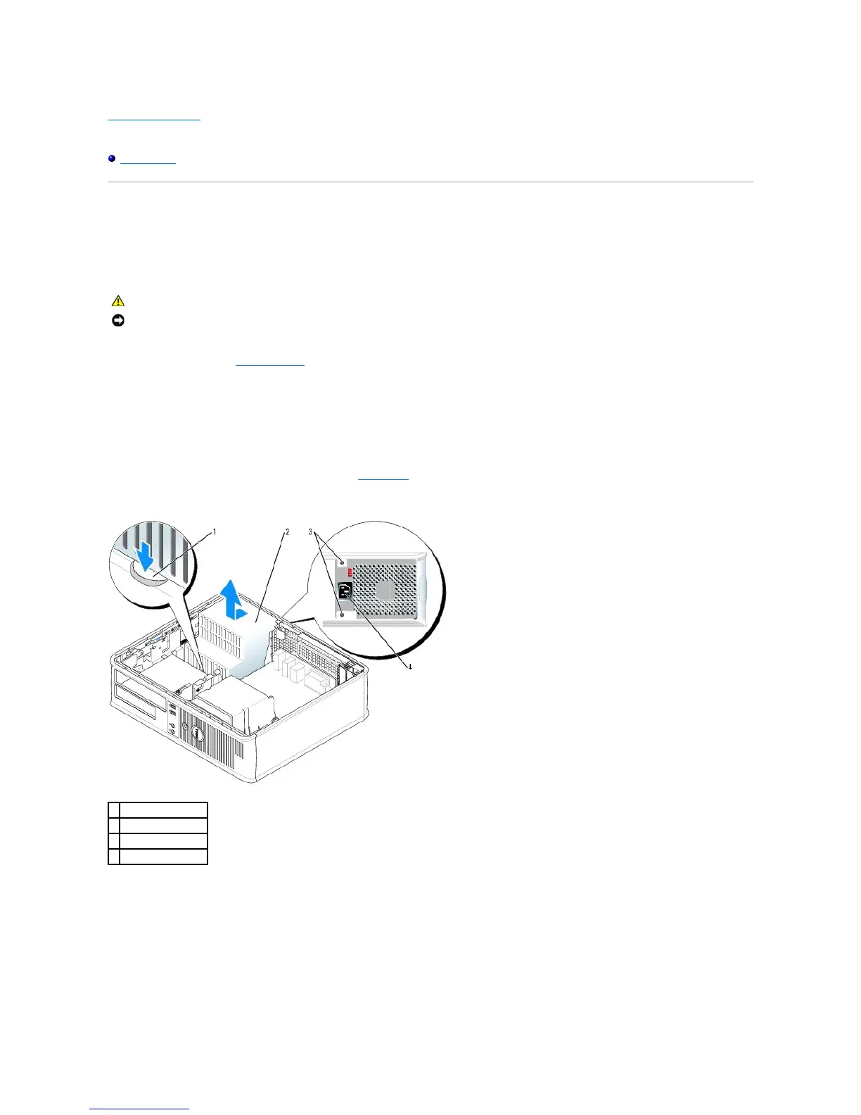 6. Slide the power supply toward the front of the computer approximately one inch.