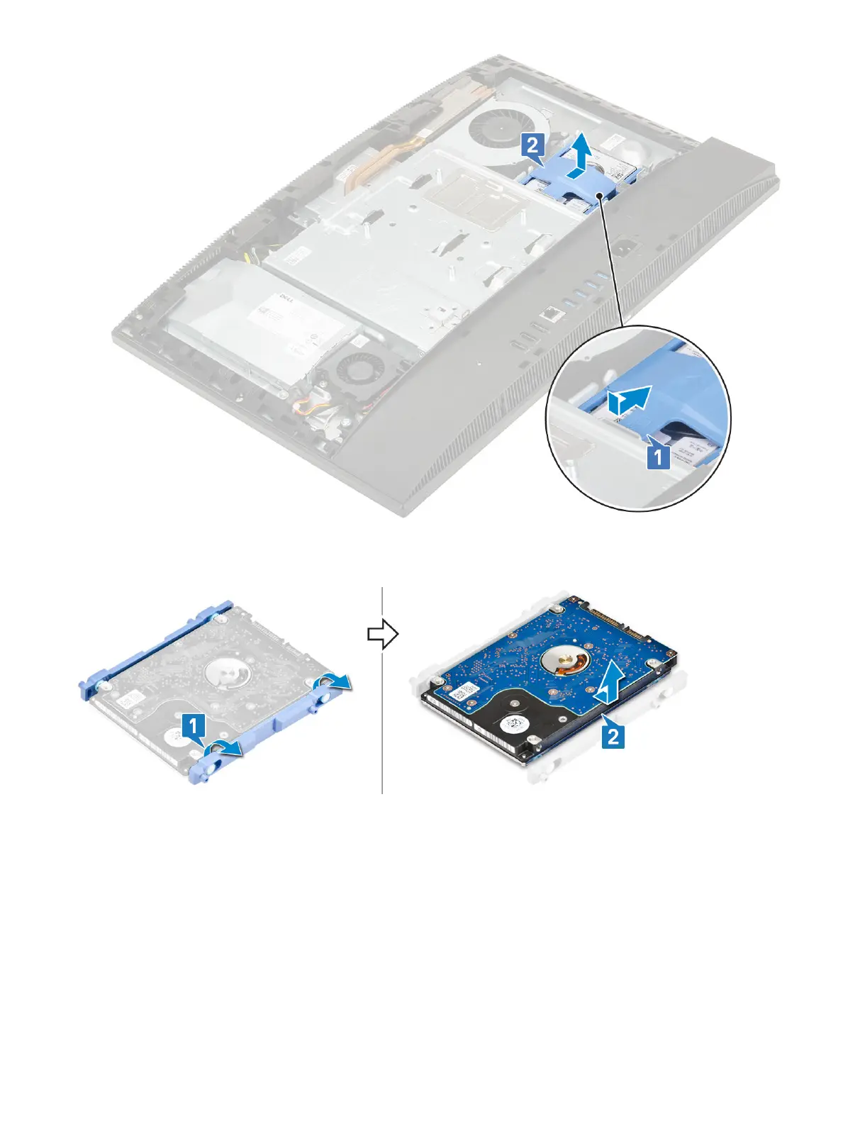 a Pry the tabs on hard drive bracket from its slots on the hard drive [1].