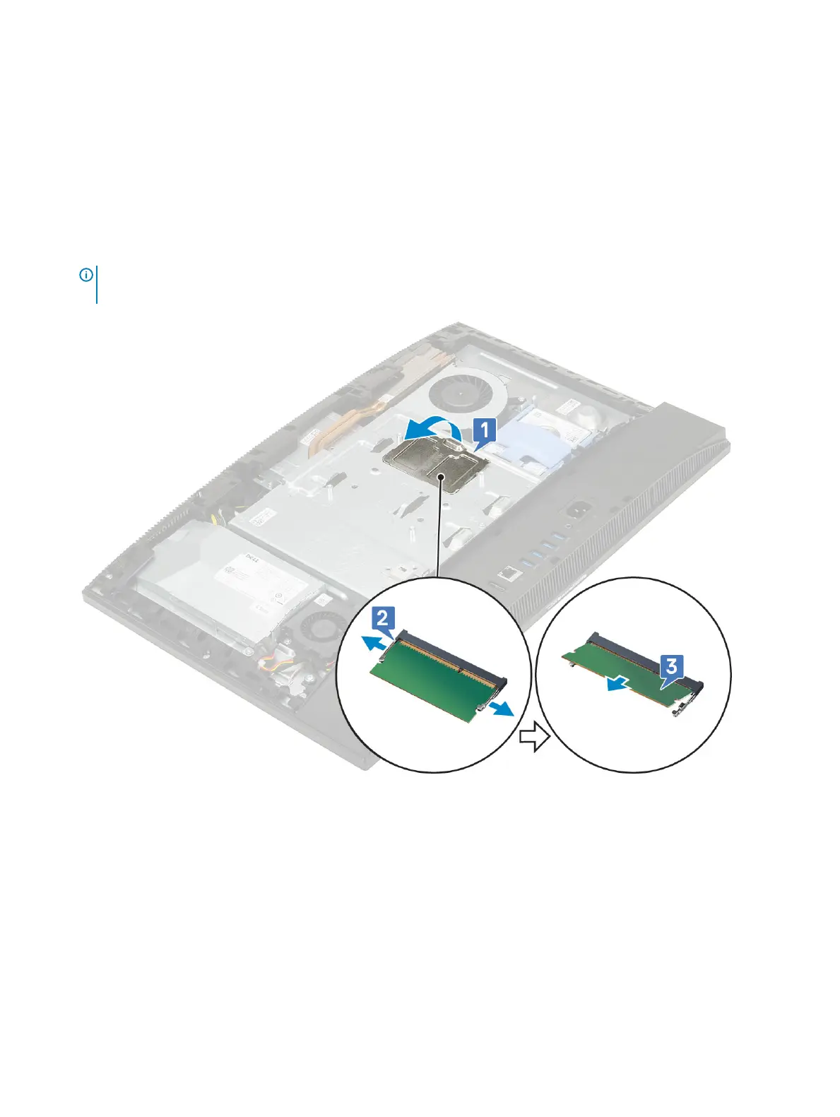 1 Align the notch on the memory module with the tab on the memory module slot, and slide it rmly into the slot at an angle [1].