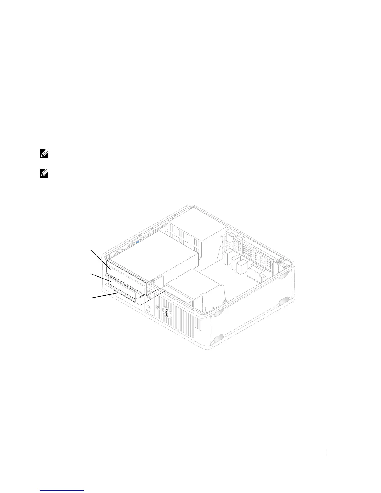 card reader) installed, the appropriate drive bay insert must be installed in place of the drive. Contact Dell if you