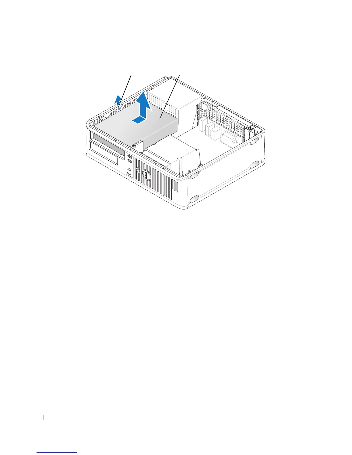 Pull up on the drive-release latch and slide the drive towards the back of the computer. Then, lift up to