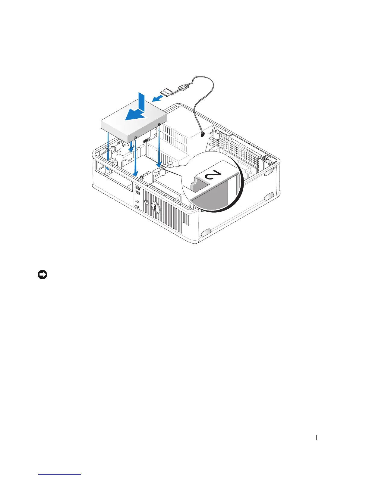 NOTICE: Always connect the data cable to the SATA1 connector when installing a second hard drive.