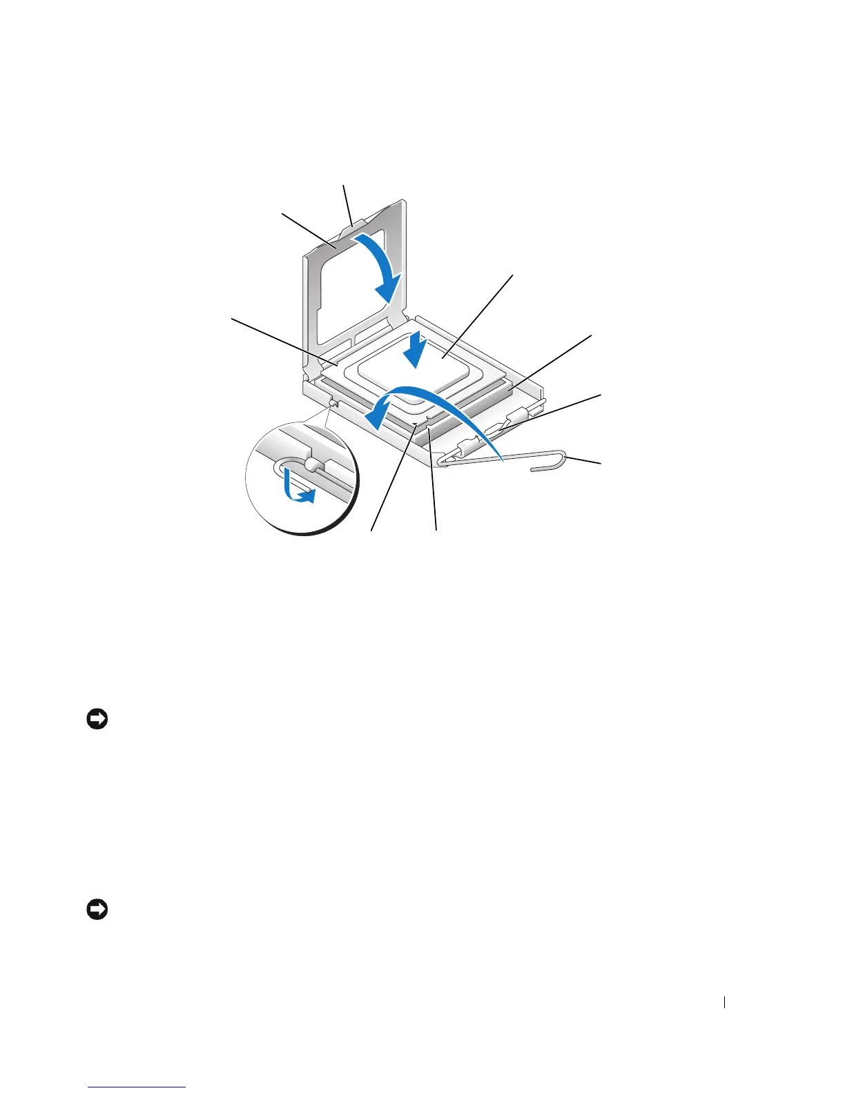 NOTICE: To avoid damage, ensure that the processor aligns properly with the socket, and do not use excessive
