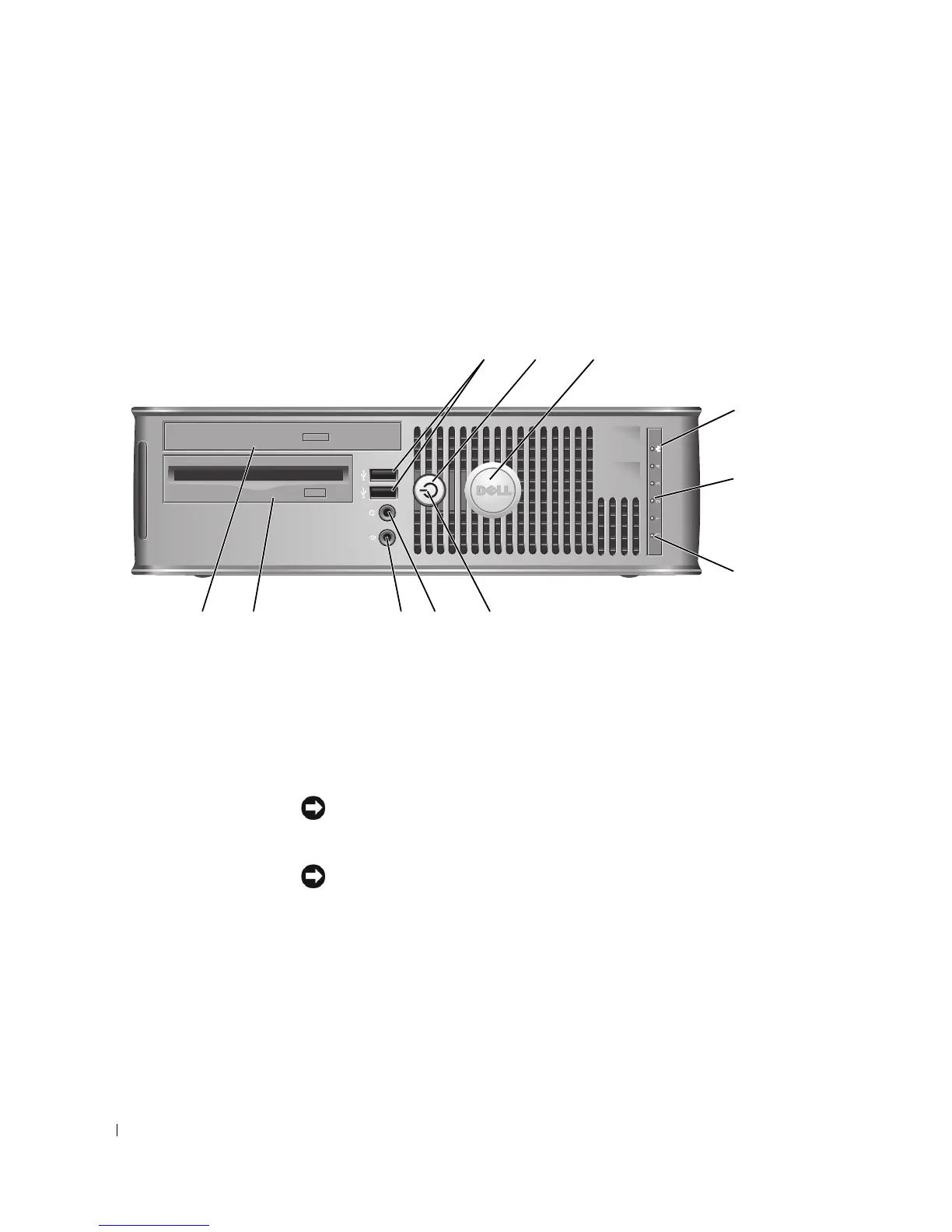 1 USB 2.0 connectors (2) Use the front USB connectors for devices that you connect occasionally, such as