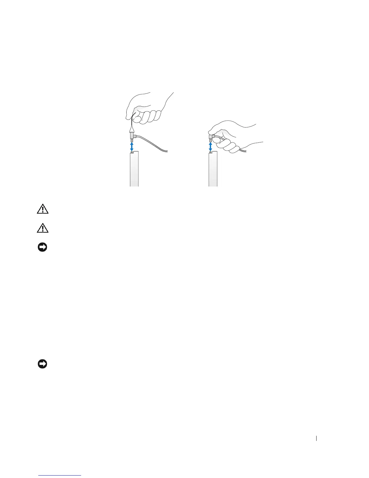 NOTICE: Do not pull the drive out of the computer by the drive cables. Doing so may cause damage to cables and