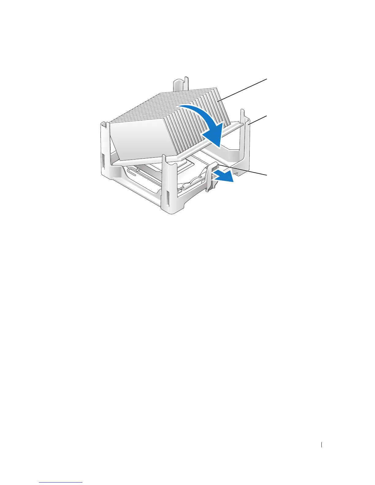 Lower the heat sink onto the processor at a 45-degree angle so that one end of the heat sink fits