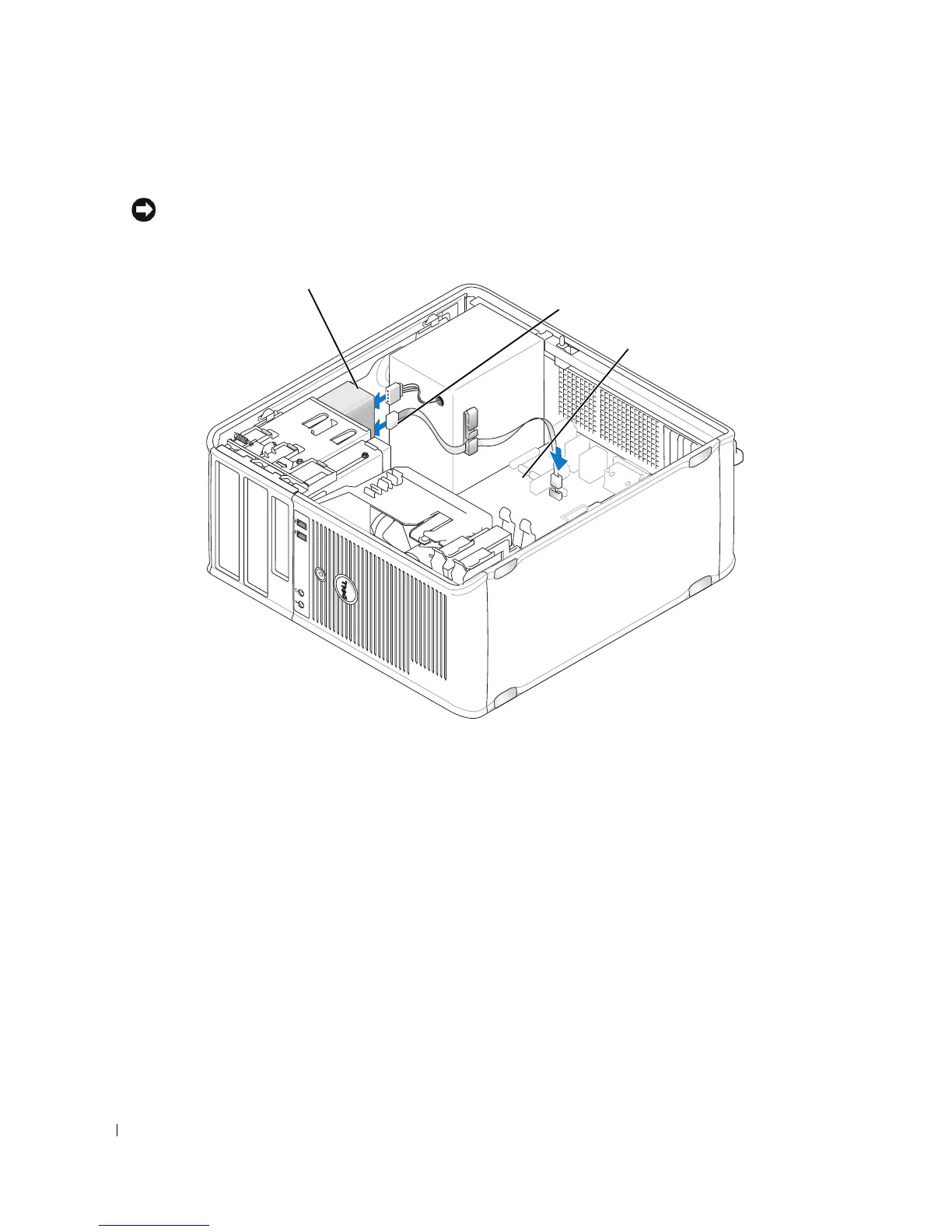 NOTICE: Always connect the optical drive SATA cable to a system board SATA connector that is labeled with