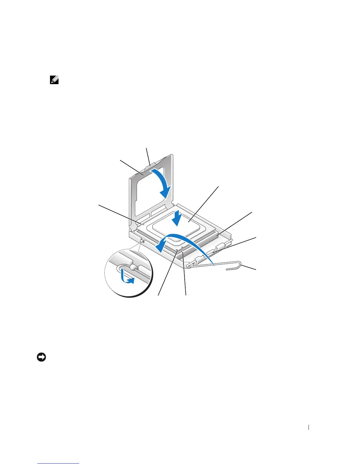 NOTICE: To avoid damage, ensure that the processor aligns properly with the socket, and do not use excessive