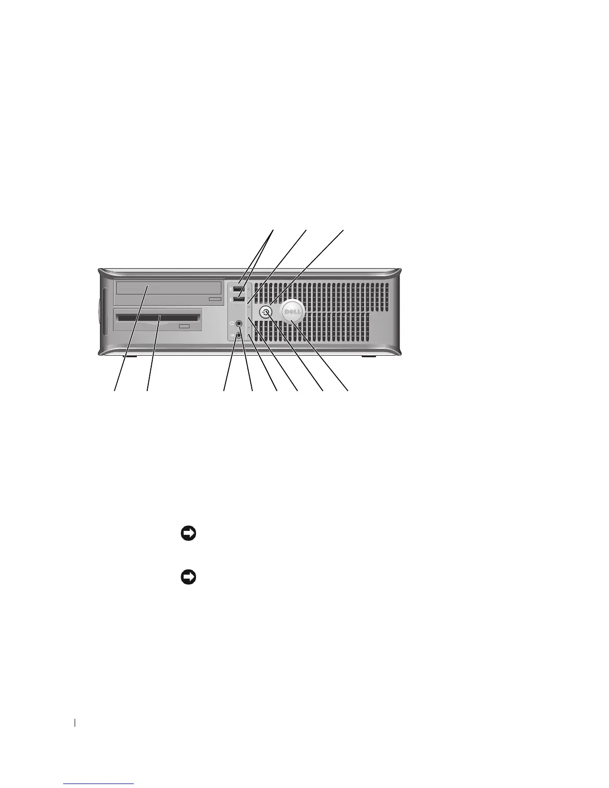 1 USB 2.0 connectors (2) Use the front USB connectors for devices that you connect occasionally, such as