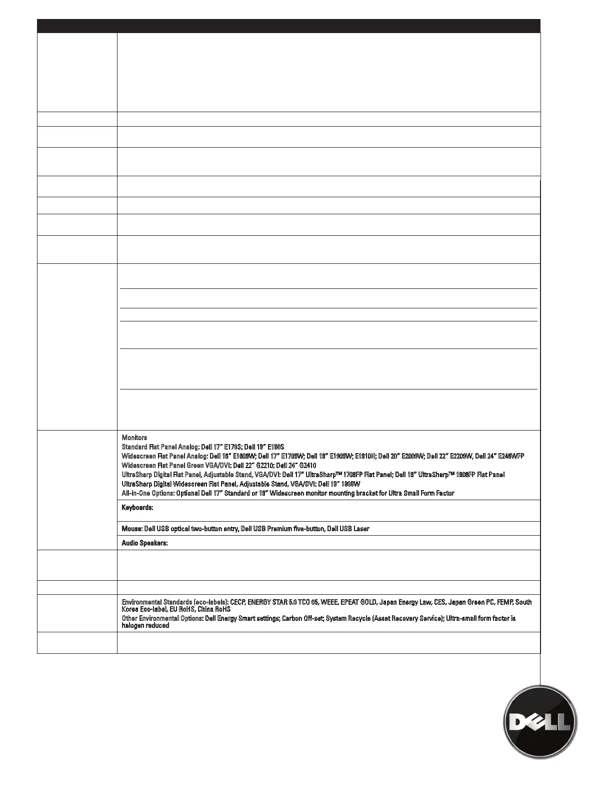 Other Environmental Options: Dell Energy Smart settings; Carbon Off-set; System Recycle (Asset Recovery Service); Ultra-small form factor is