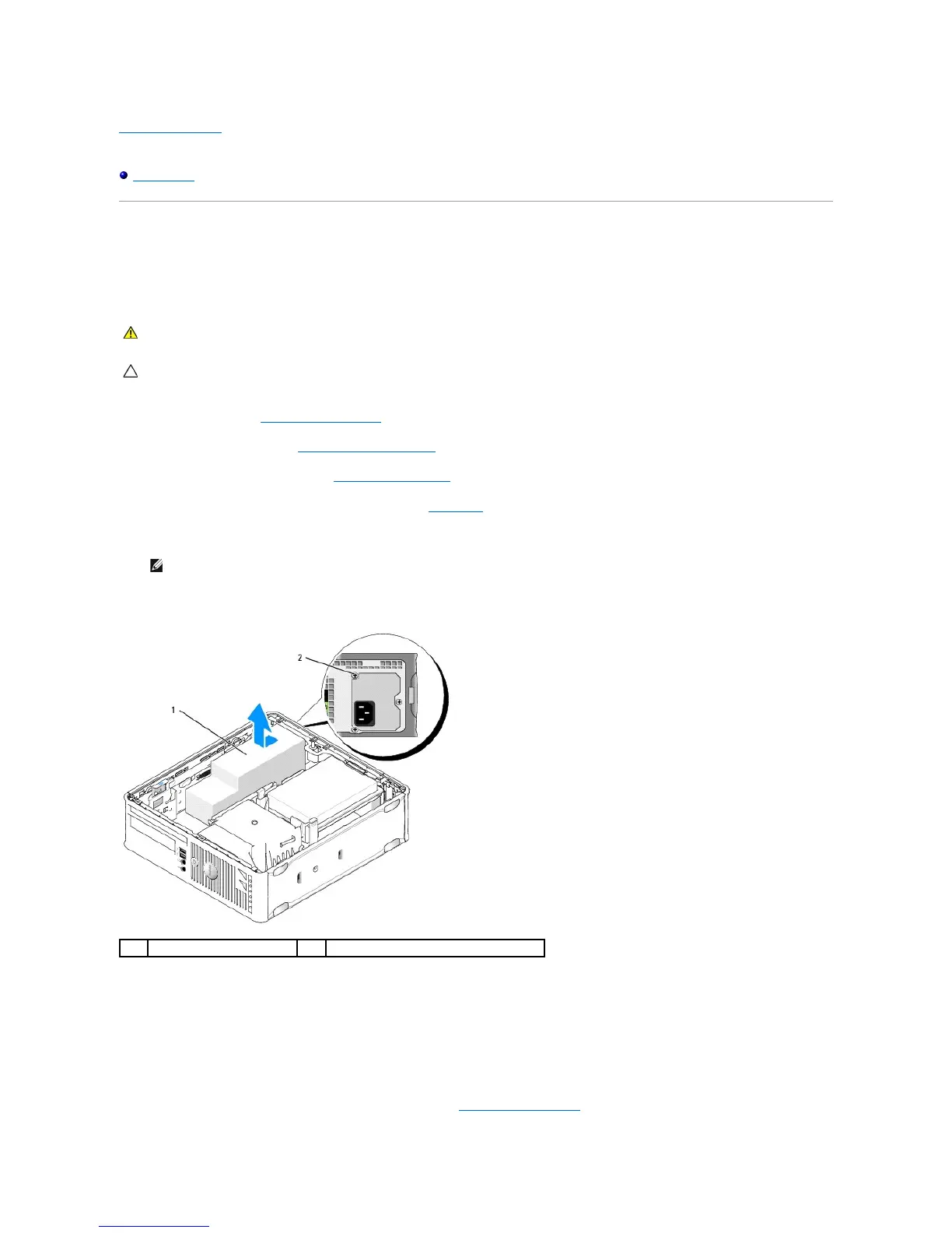 7. Slide the power supply toward the front of the computer (approximately 1 inch).
