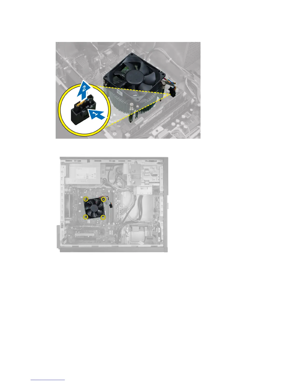 4. Use a Phillips screwdriver to loosen the captive screws in diagonal order and lift the heat sink away from the