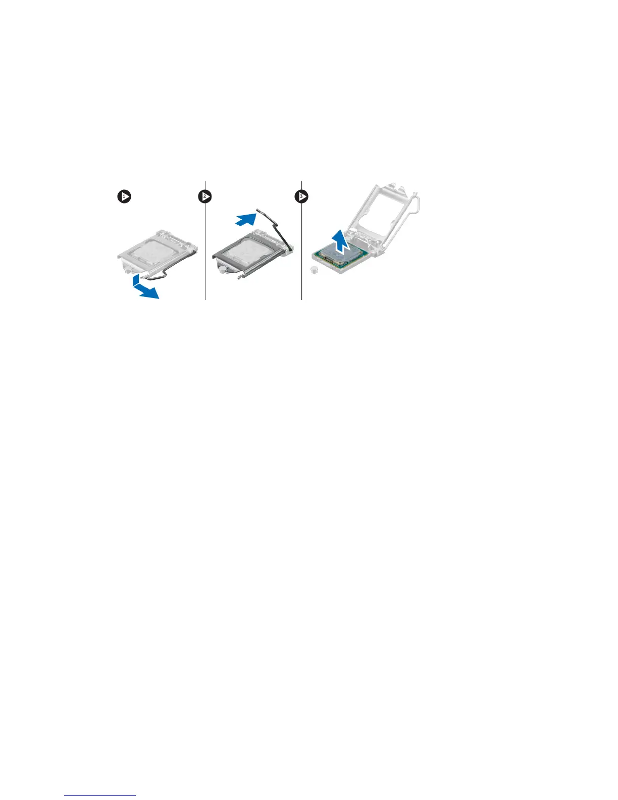 4. Press the release lever down and then move it outward to release it from the retention hook. Lift the processor