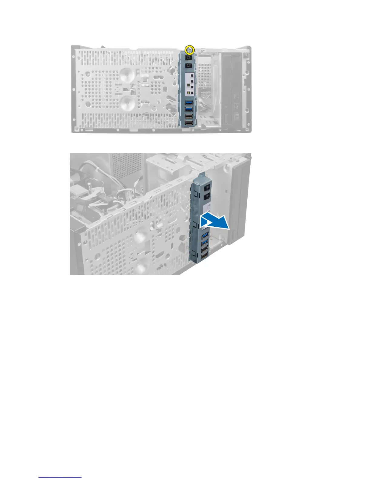 7. Slide the I/O panel towards the left of the computer to release it and pull the I/O panel along with its cable out of the
