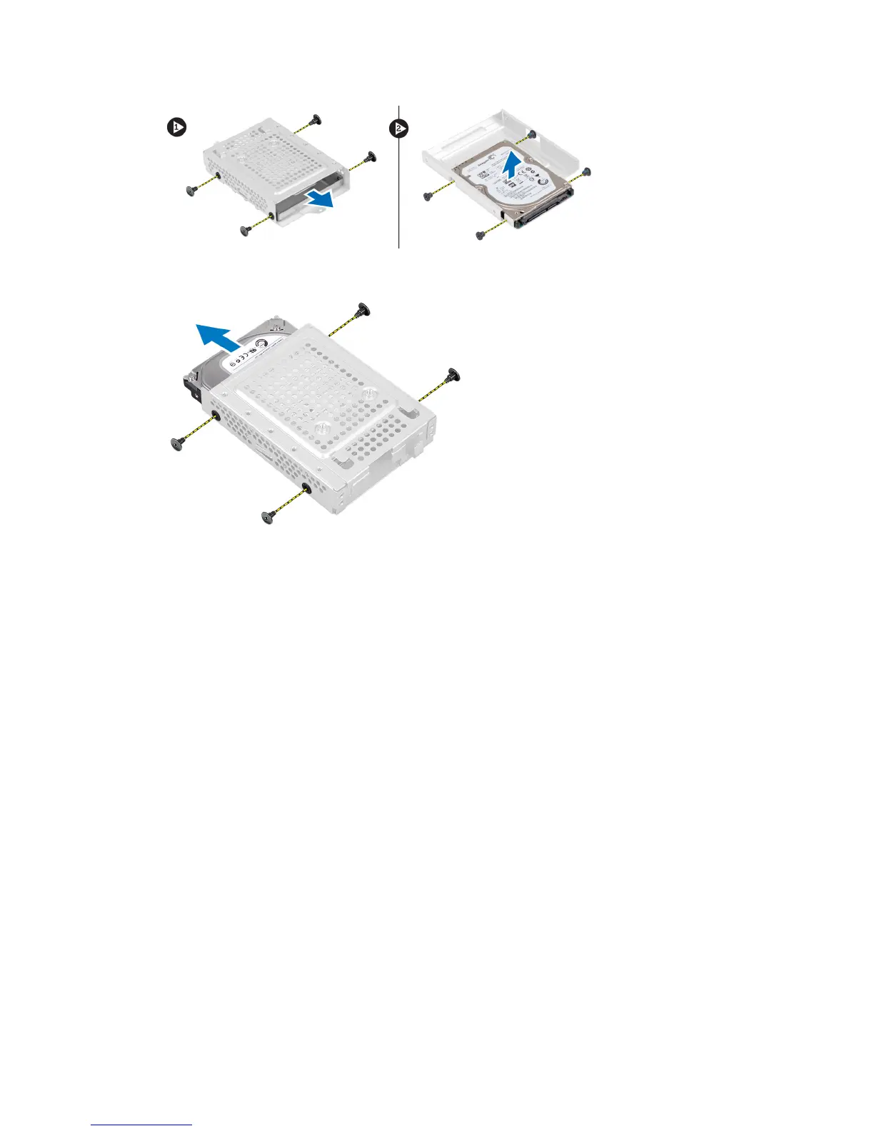 6. For a 3.5–inch hard drive, remove the screws that secure the hard drive to the hard-drive bracket. Slide the hard