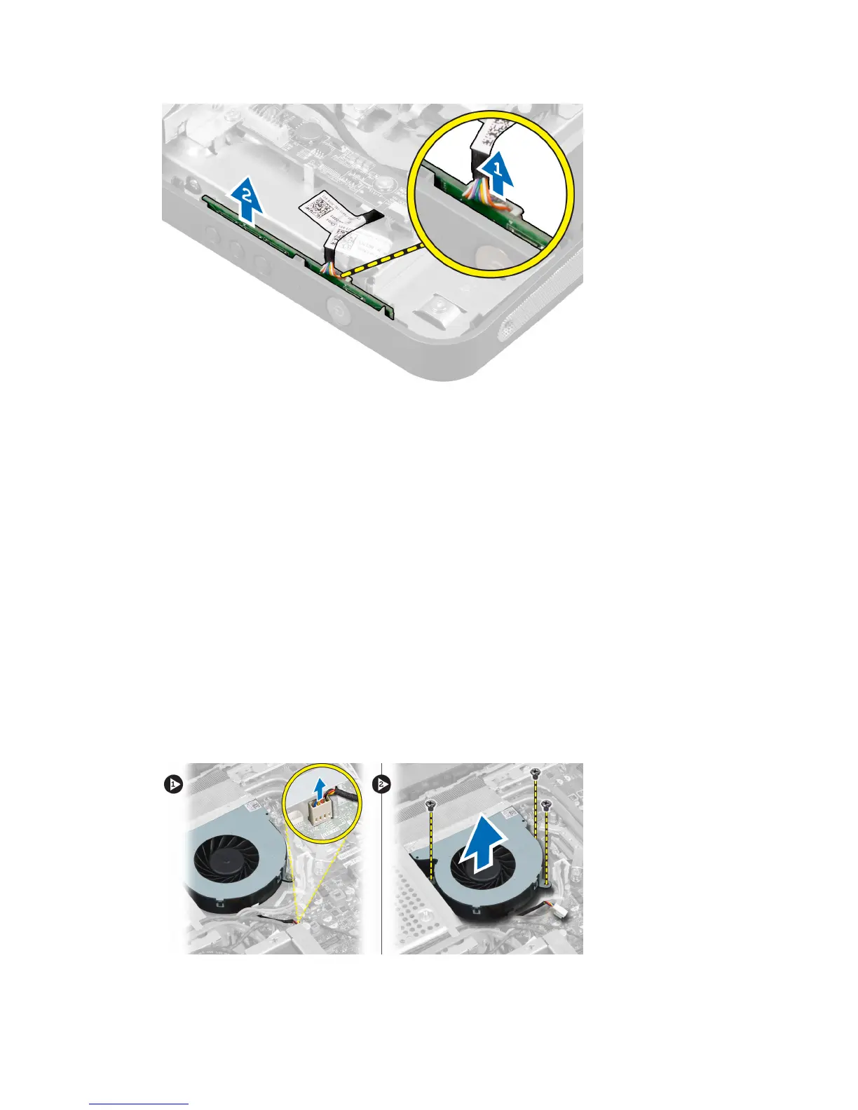 3. Disconnect the processor-fan cable from the connector on the system board. Remove the screws that secure the