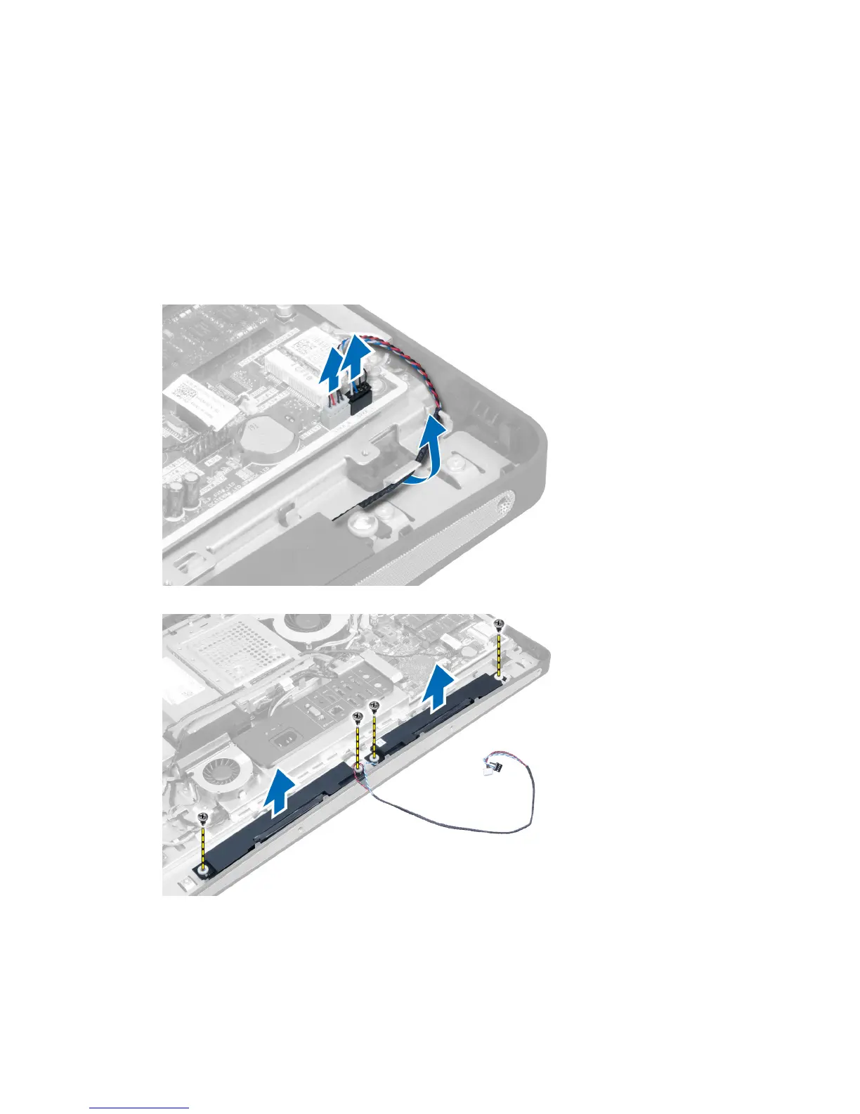 4. Remove the screws that secure the speaker to the chassis. Lift the speakers from the computer.