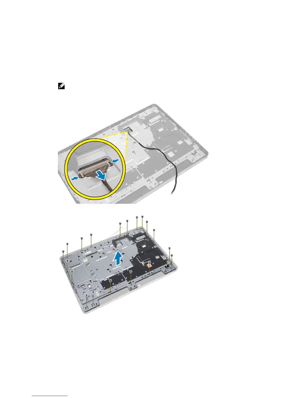 3. Remove the LVDS cable by pressing the latch inwards and disconnecting it from the connector. Remove any other