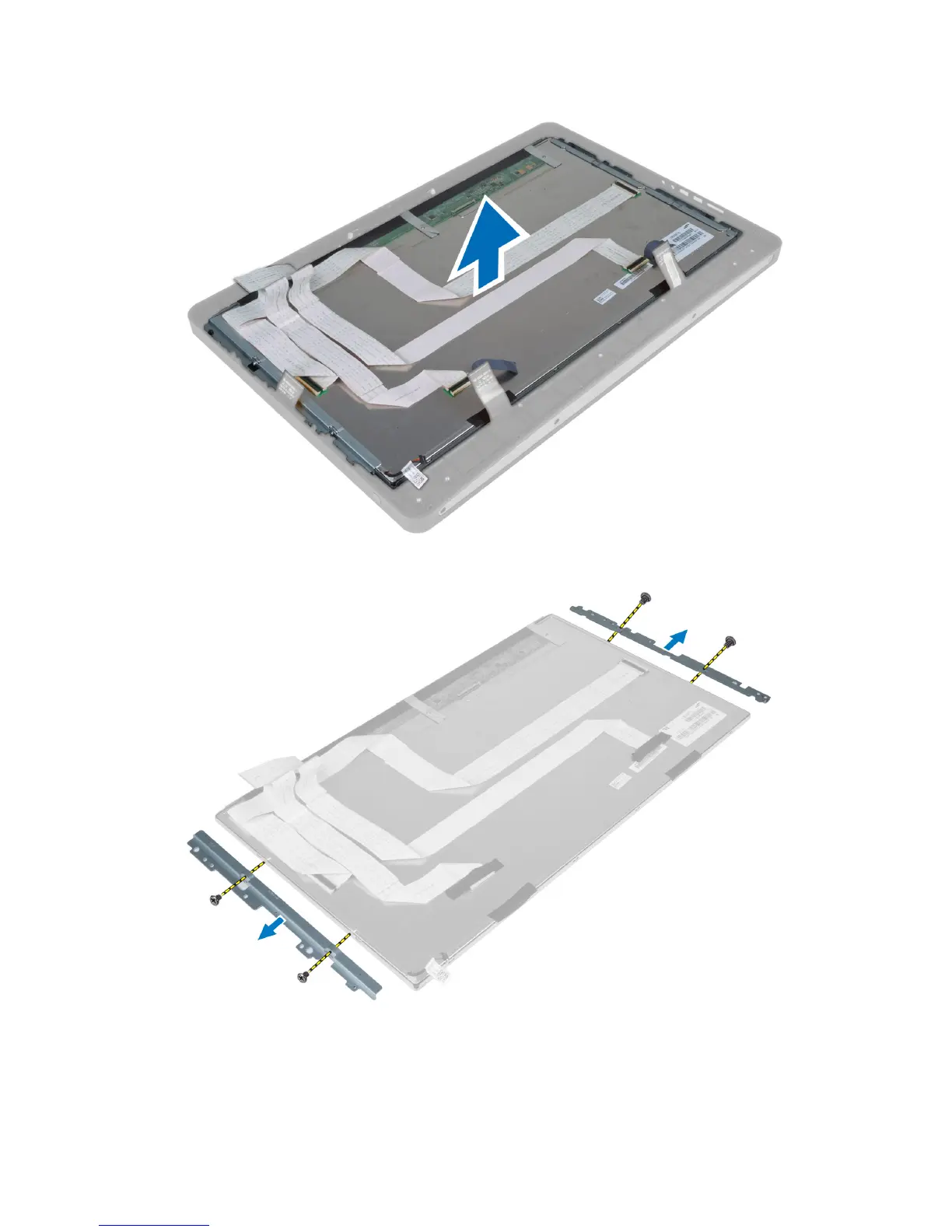 8. Remove the screws that secure the display brackets to the display panel and remove the display brackets from the