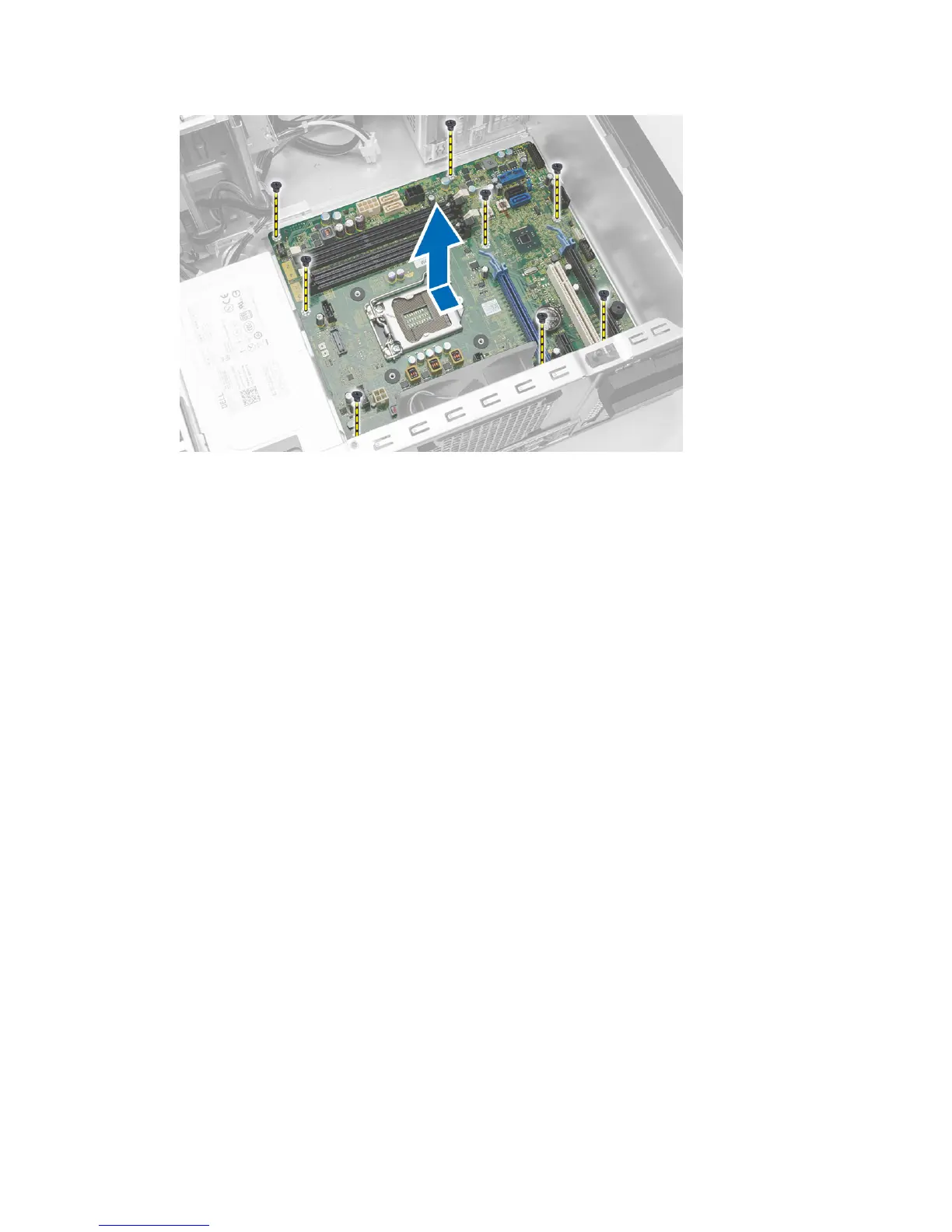 5. Tilt the system board at 45–degrees, and then lift the system board out of the computer.
