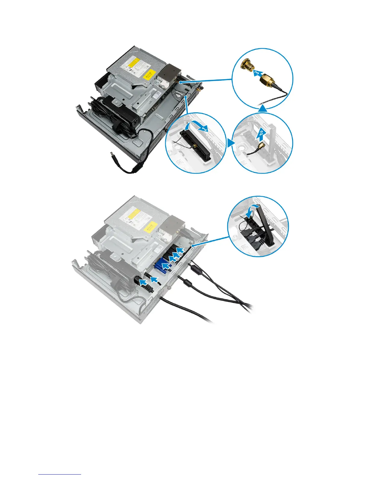 5. Route the USB cables through the cable management clip and connect them to the computer. Close