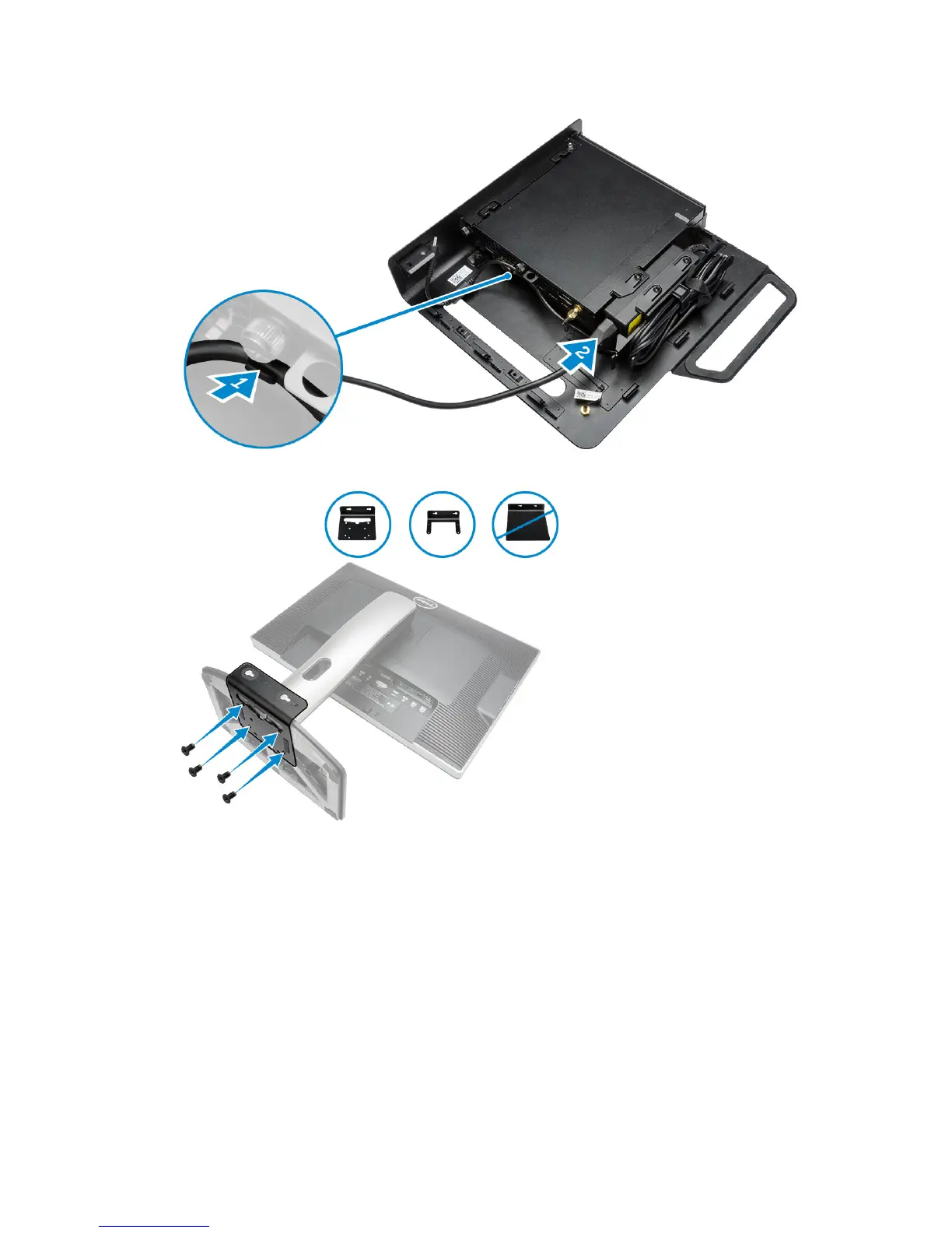 6. Align the PUZ plate to the bottom of monitor and tighten the screws.