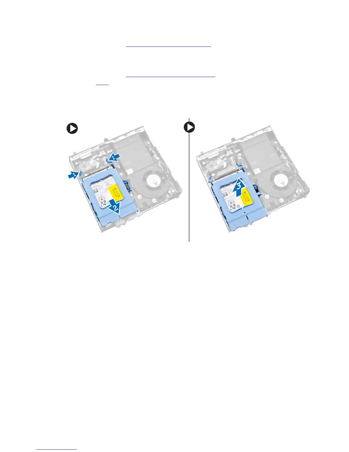 b. Lift the hard drive away from hard-drive bracket [2].