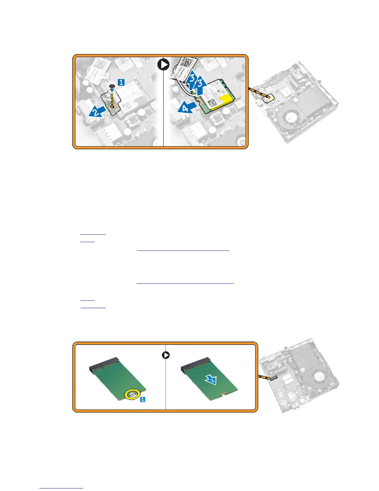 b. Slide and remove M.2 SSD or DDPE card from the system board [2].