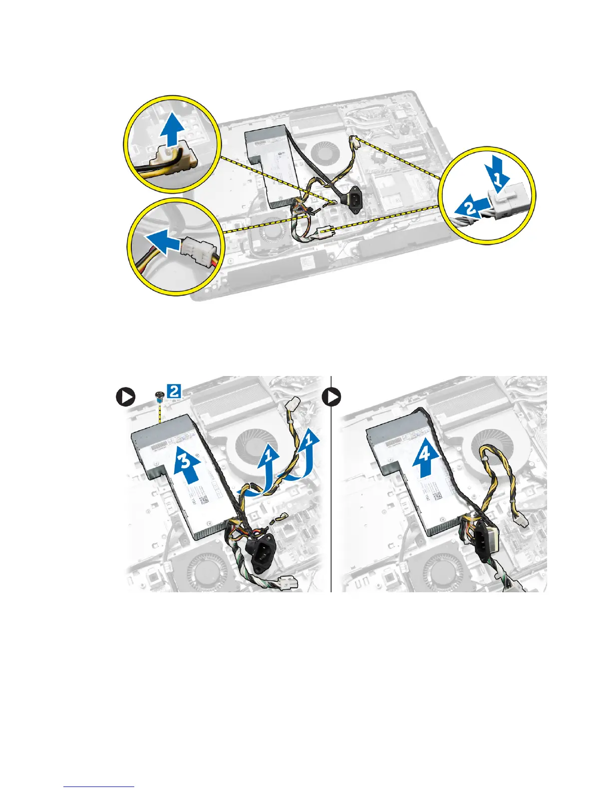 c. Slide upwards to release the power-supply unit from the chassis [3].