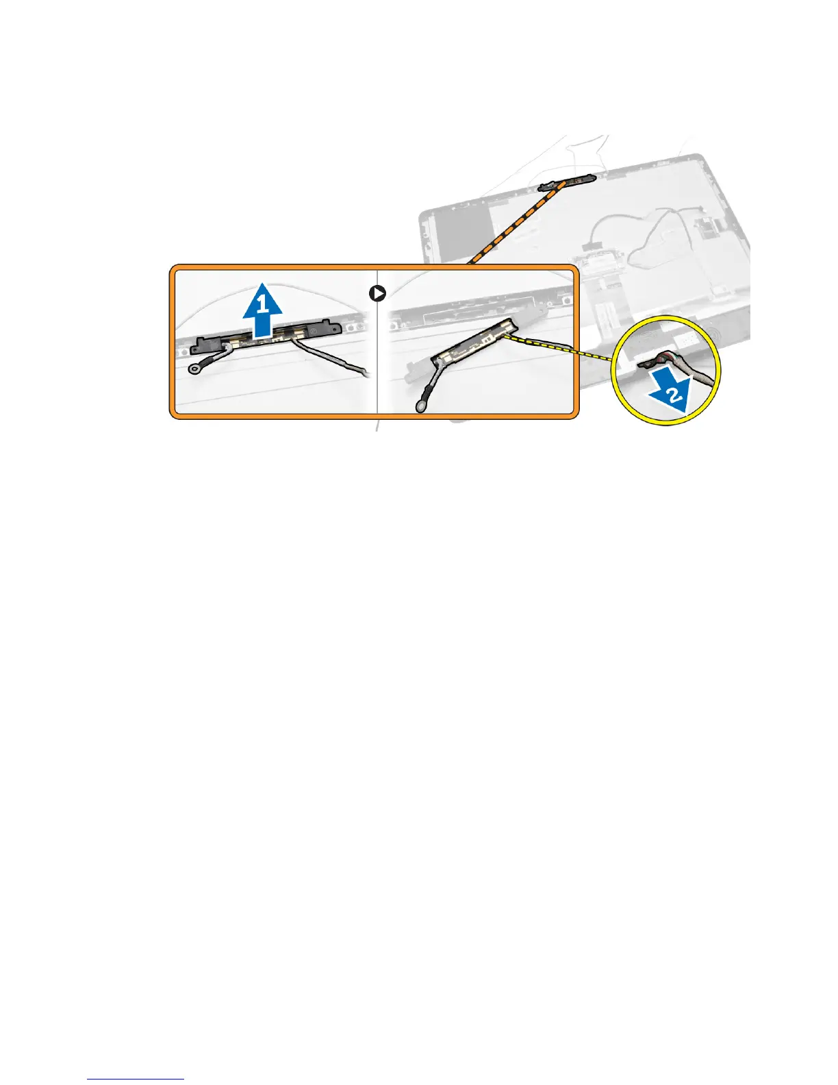 3. Lift the latch and release the camera from its slot to access the camera cable. Disconnect the camera