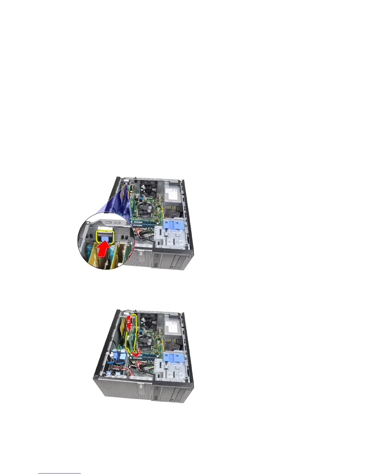 4. Pull the release lever away from the PCIe x16 card to release the securing
