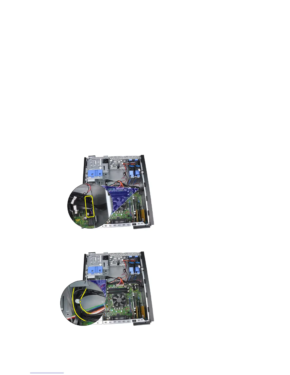 5. Unthread the Input/Output Panel and FlyWire cable from the clip on the
