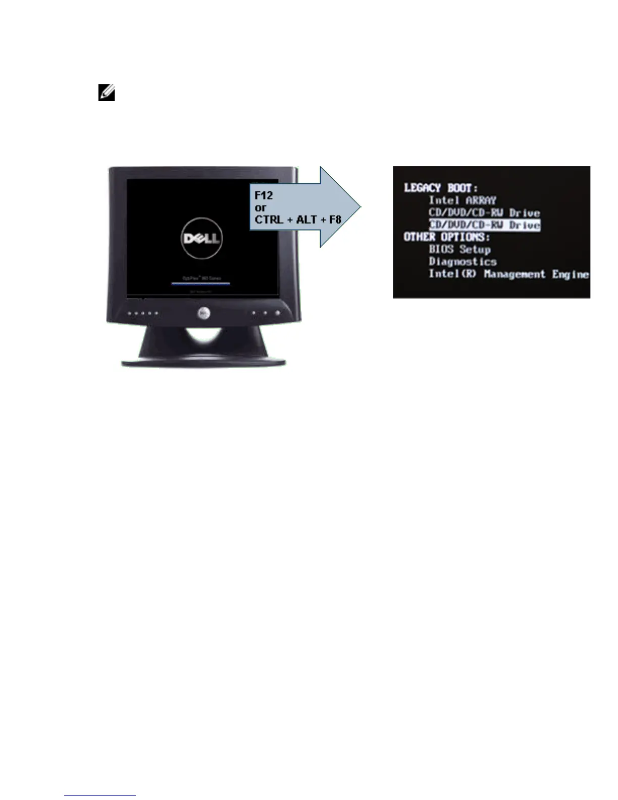 beeps. The key sequence invokes the Boot Device Menu.