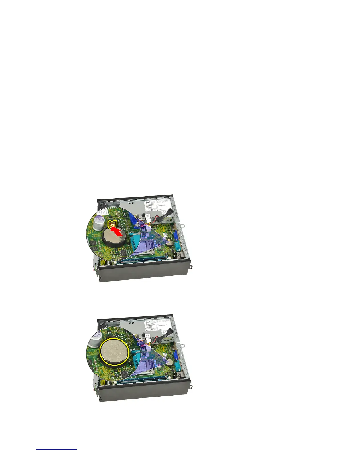 Dell OptiPlex 990 - Coin-Cell Battery Service; Removing the Coin-Cell Battery