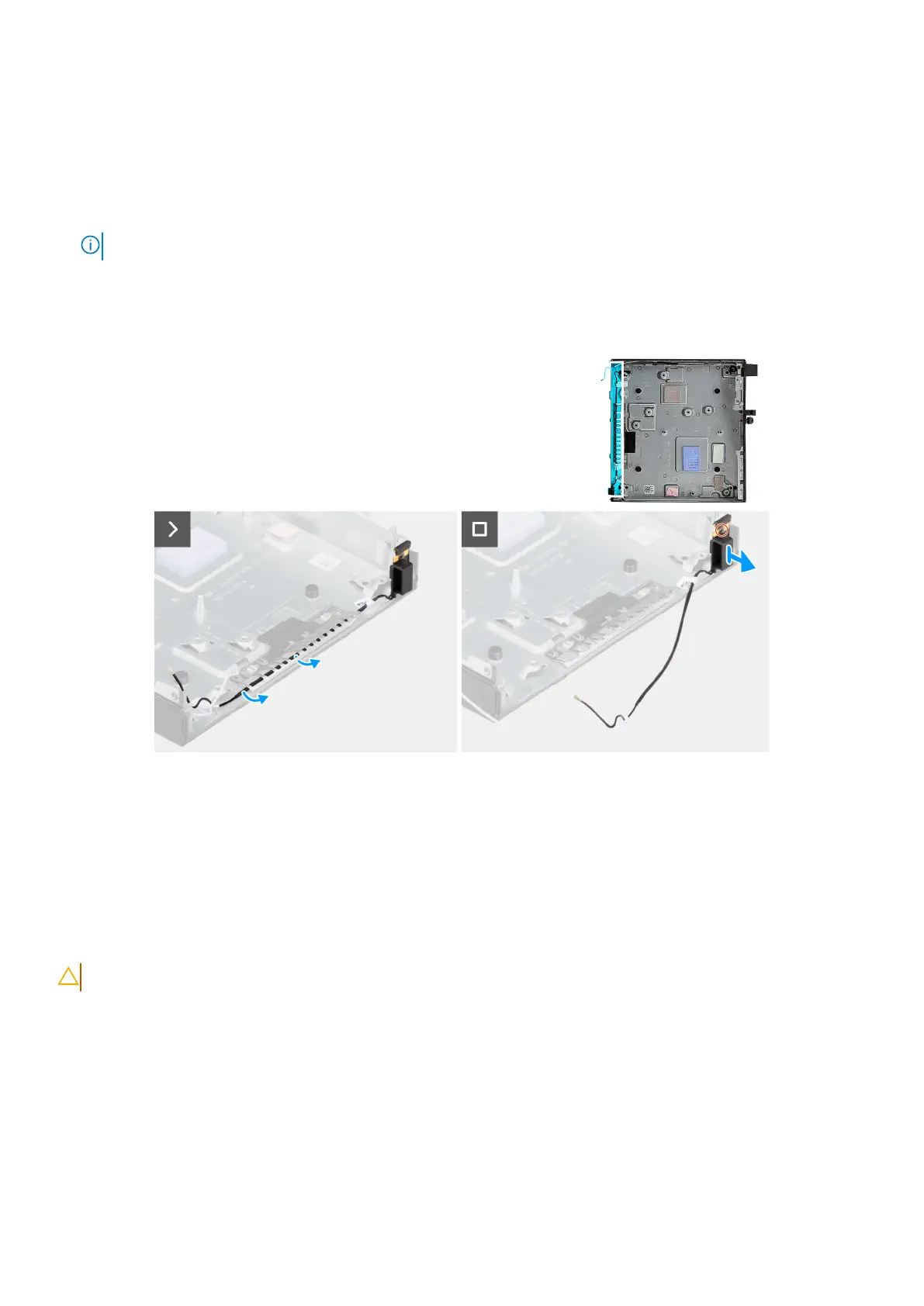 The following image(s) indicate the location of the antenna module (black cable) and provides a visual representation of the