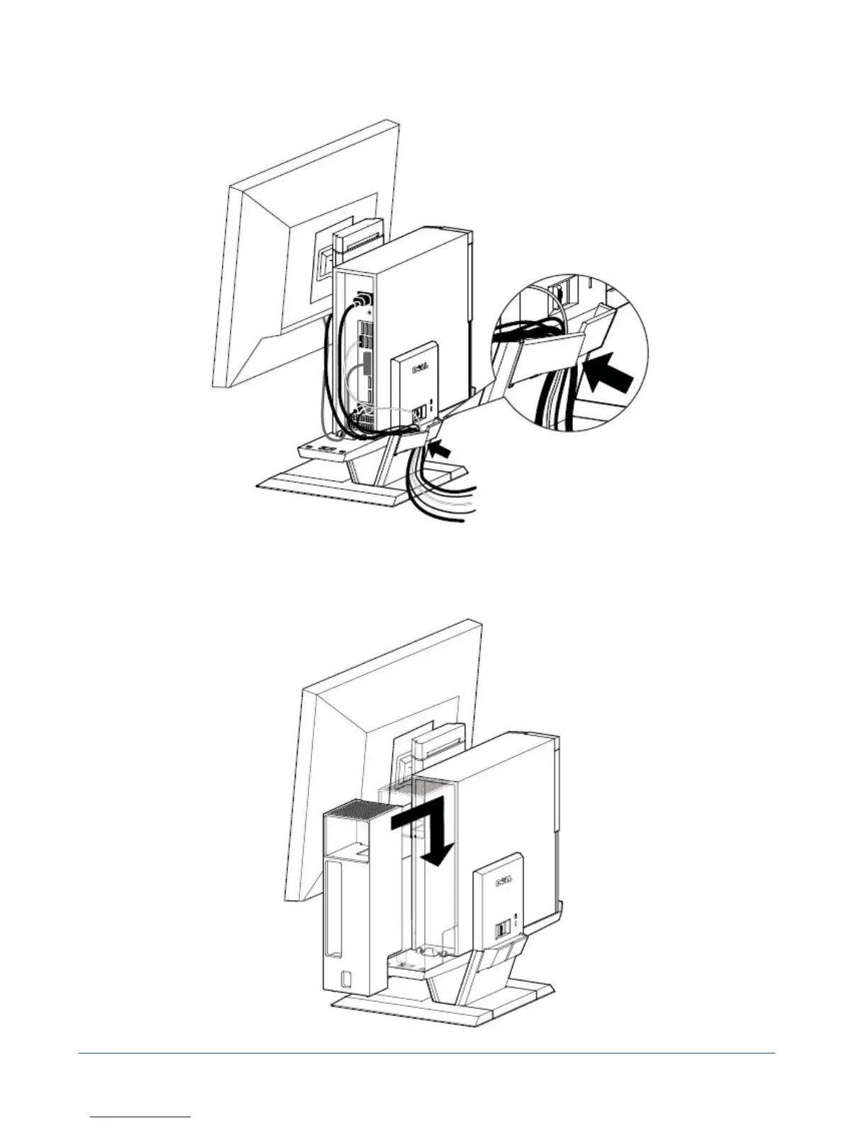 10 Route the cables and power cords through the clip at the back of the AIO stand.