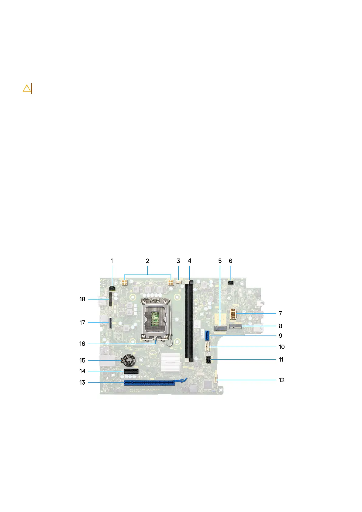 The following image indicates the connectors on your system board.
