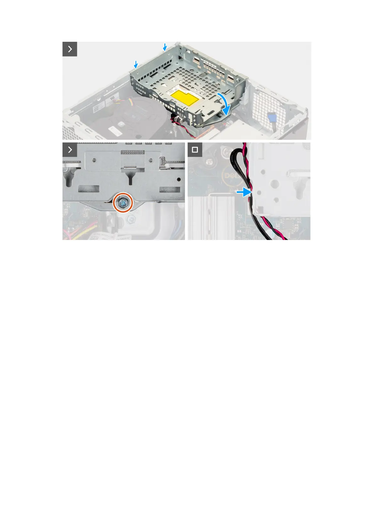 8. If the optical drive is installed, route the power and data cables through the routing guide on the disk-drive cage.