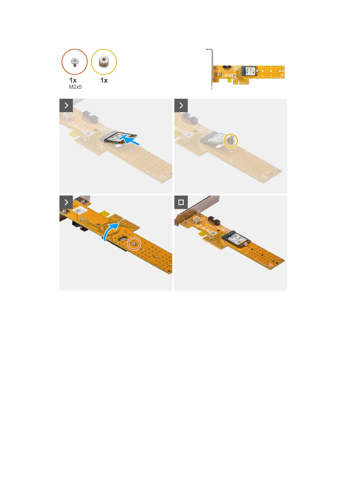 Figure 24. Installing the M.2 2230 solid-state drive on Dell Ultra Speed Drive Gen3 card