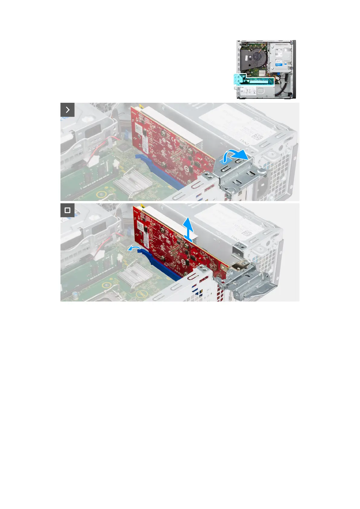 3. Gently lift the graphics card off the PCIe card connector (SLOT 2) on the system board.