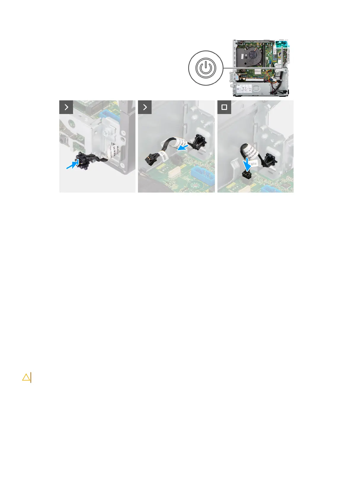 1. Insert the power-button cable through the slot on the chassis from the front-side of the computer.