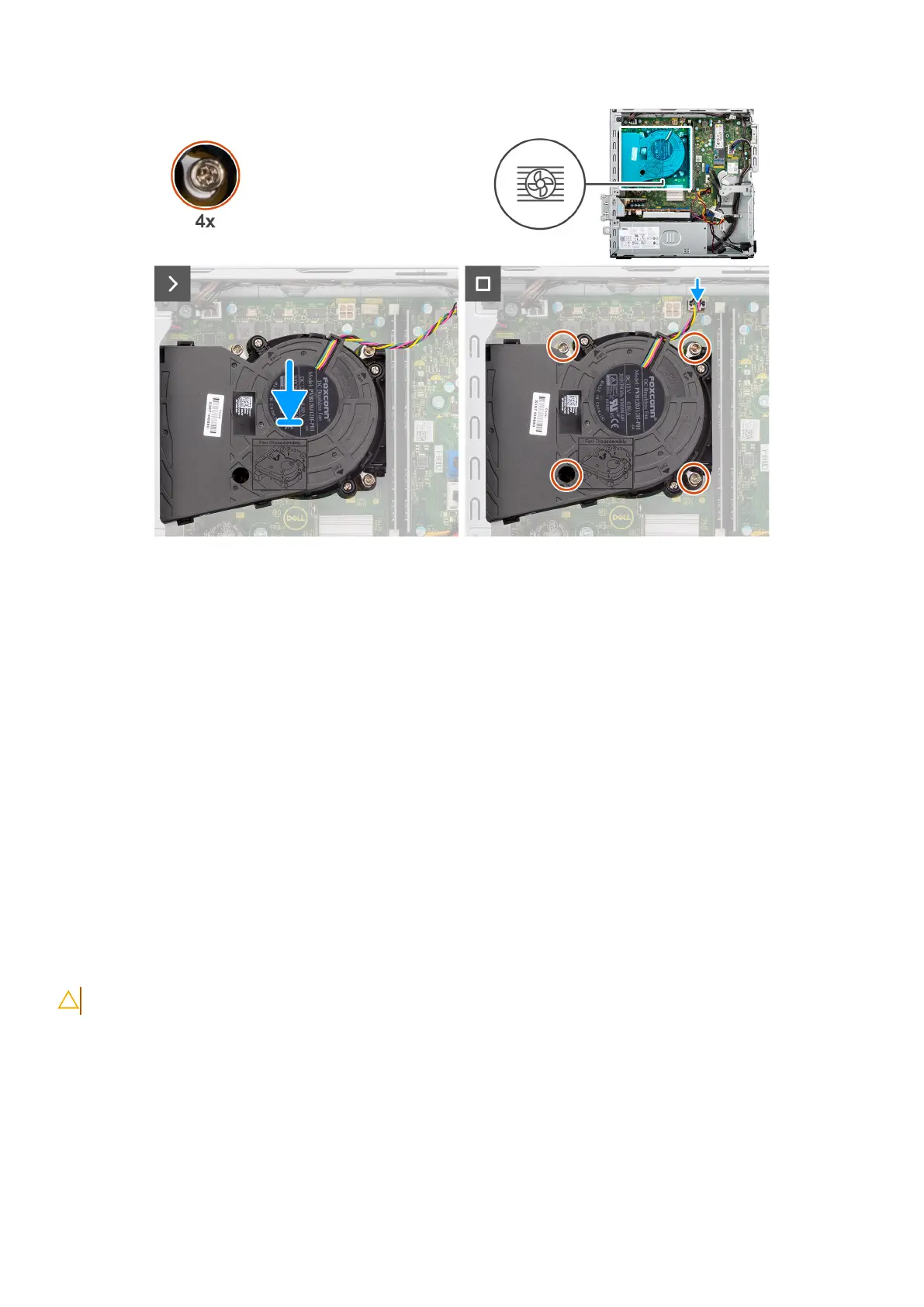 2. In sequential order (1>2>3>4), tighten the four captive screws that secure the processor fan and heat stink assembly to the